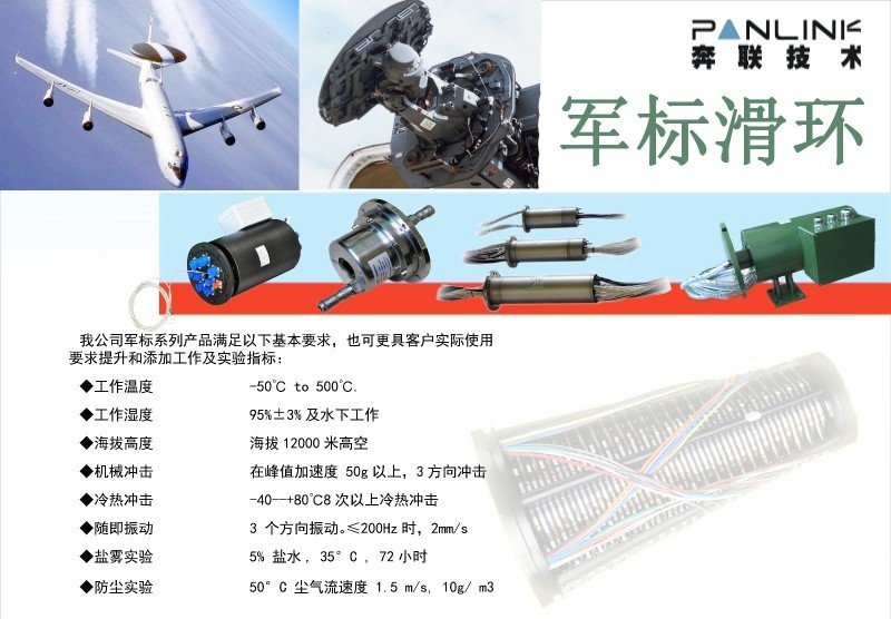 現(xiàn)代防國(guó)防業(yè)集成了越來(lái)越多的高科技電氣系統(tǒng)。例如通訊,監(jiān)控,指揮系統(tǒng)等,要求從一個(gè)旋轉(zhuǎn)機(jī)構(gòu)中傳輸電源和信號(hào)到靜止的結(jié)構(gòu)(空氣,空間,地面,等)。奔聯(lián)技術(shù)作為國(guó)防應(yīng)用的滑環(huán)制造商擁有超過(guò)10年的經(jīng)驗(yàn),公在實(shí)際的使用中證明了其產(chǎn)品的杰出性能和可靠性。