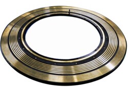 本實用新型將導(dǎo)電環(huán)由簡單分體組裝變?yōu)椴捎铆h(huán)氧樹脂玻璃布復(fù)合管材與環(huán)氧玻璃布板加工后,通過環(huán)氧樹脂與固化劑的結(jié)合作用形成一個整體。將導(dǎo)電環(huán)鑲嵌其中,再加工成所需尺寸的獨有方式,具備將電源和各種信號在上下車間進行不間斷的傳輸,且上下車之間有360度無限制旋轉(zhuǎn)的能力,特別是其中間位置為大口徑輸水管。本實用新型特點如下:1、高防護特性,可以達到潮氣對導(dǎo)電滑環(huán)無影響的標準;2、高絕緣特性,因采用的材質(zhì)均為H級高壓絕緣材料,環(huán)間可以耐壓2500V1分鐘,遠遠高于車輛電器的工作電壓;3、大孔徑特性·,導(dǎo)電滑環(huán)的中間可以通行5英寸乃至更大孔徑的不銹鋼水管;