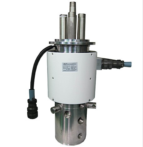 液壓滑環(huán)內(nèi)部設(shè)置有屏蔽信號滑環(huán),液壓滑環(huán)的上部設(shè)置有旋轉(zhuǎn)變壓器,旋轉(zhuǎn)變壓器與屏蔽信號滑環(huán)連接,旋轉(zhuǎn)變壓器的上部設(shè)置有角度反饋器。為了檢修的方便,滑環(huán)外罩與旋轉(zhuǎn)液壓接頭的交接處安裝有機(jī)械式角度盤。與現(xiàn)有技術(shù)相比,本技術(shù)的優(yōu)點(diǎn)在于1、通過改變船舶動力推進(jìn)器專用中心集電器的結(jié)構(gòu),使船舶推進(jìn)器可不受供電、信號系統(tǒng)的局限性,能給船舶推進(jìn)器提供大電流供電;2、通過設(shè)置液壓旋轉(zhuǎn)接頭、旋轉(zhuǎn)變壓器和角度反饋器,達(dá)到本實(shí)用新型的中心集電器可給船舶動力推進(jìn)器提供動力、控制、冷卻、液壓等多方面的服務(wù),減少了眾多繁瑣的輔助設(shè)備。