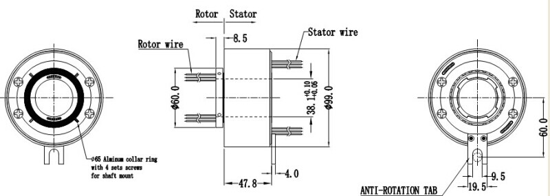 A. 主體端面上有止轉(zhuǎn)片用螺絲使滑環(huán)定子與設(shè)備固定部分相連。