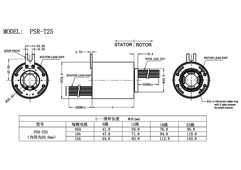產(chǎn)品類型:過(guò)孔式滑環(huán) 產(chǎn)品型號(hào):PSR-T25