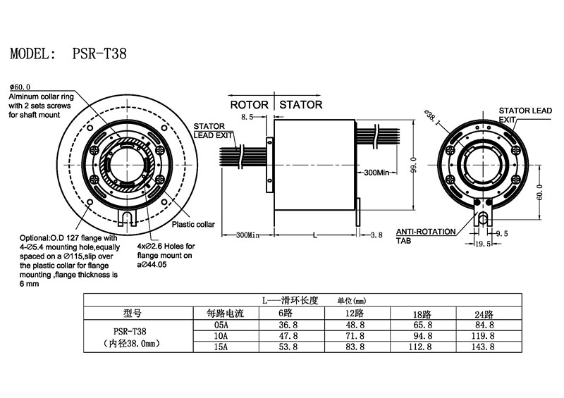 產(chǎn)品類(lèi)型:過(guò)孔式滑環(huán) 產(chǎn)品型號(hào):PSR-T38