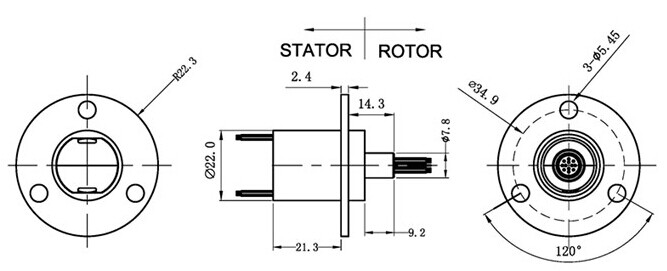 A. 主體端面∮110圓面上3個M3×8的孔與設(shè)備固定部分相連,用3個M3(最大外徑)的螺絲安裝好定子