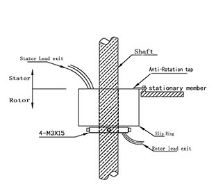 Because of possible geometric mismatching between the customer's application and the slip ring,'hard mouting'of both ends of the slip ring(i.e.securing the rotor and stator such that there is no floating during operation) is not recommended and may cause premature failure. |
